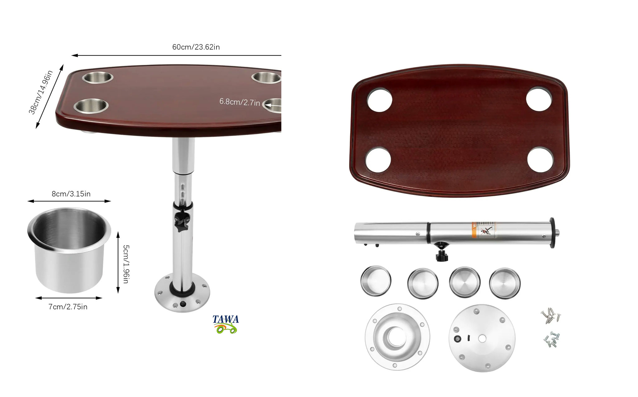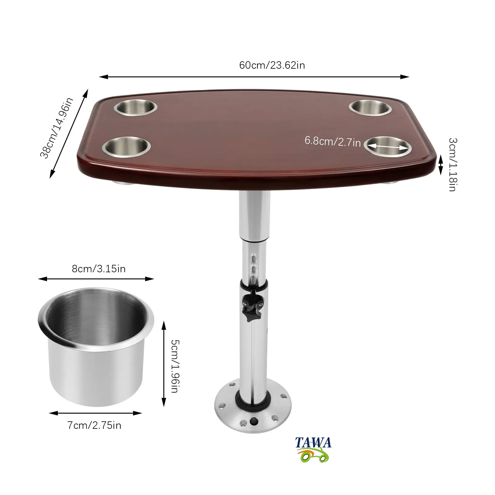 Mesa para barco RV, mesa para caravana marina, mesa de pedestal de roble, altura ajustable extraíble, Base de mesa de soporte superior, 4 portavasos de 22-28 pulgadas